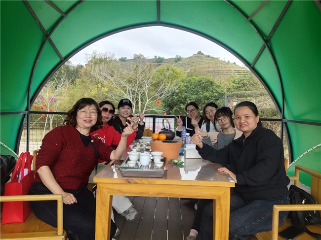 活动开始,大家乘坐观光车穿行于千亩梯田茶园之间,沿途云雾缭绕、绿意层叠,尽享生态风光。在红军寮红色教育点,大家认真聆听革命故事、重温峥嵘岁月,接受深刻的红色洗礼,进一步坚定理想信念、厚植家国情怀。午后,大家围炉煮茶,在茶香氤氲中畅谈工作生活、交流心得感悟,慢享春日惬意时光,增进彼此情谊。大家纷纷表示,此次活动既缓解了工作压力,又增进了同事间的情谊,感受到乡党委、政府的关怀与温暖。