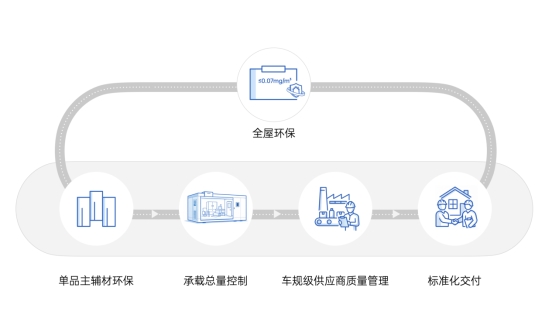 依托自研的环保保障体系「GreenShield环保盾」,栖息地 S32 将全屋甲醛释放量严格控制在≤0.07mg/m³,优于国家推荐标准(≤0.08mg/m³),为用户自采家具预留了充足的甲醛释放安全空间。栖息地 S32 的高环保标准,并非依赖单一材料,而是从源头到交付的全流程把控:从单品主辅材的严苛筛选,到通过承载总量控制避免叠加污染,从标准化的施工交付流程,到车规级的供应商质量管理,构建起无死角的环保防护。