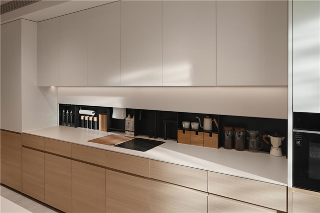 (图为:栖息地 S32 厨房墙面一体化收纳设计)