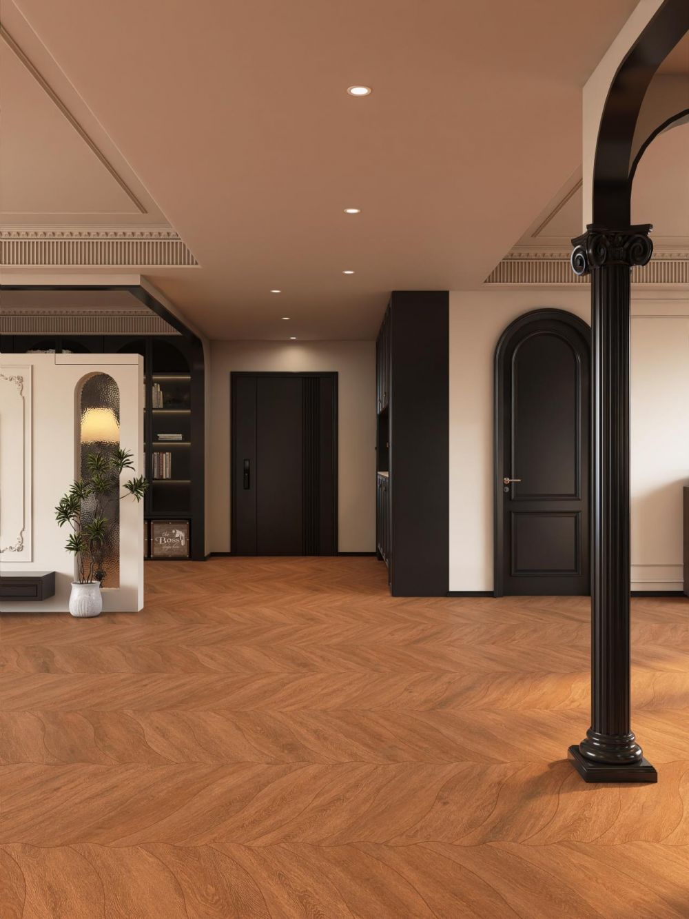 中式风木纹砖深入挖掘东方美学精神内核,将园林意境融入瓷砖设计。配合艺术花砖系列中从苏州园林冰裂纹理汲取的灵感,以及敦煌壁画青绿矿物色的现代演绎,罗浮威尔构建了完整的中式空间解决方案。这种对传统文化的当代转译,让中式风格真正融入现代生活。