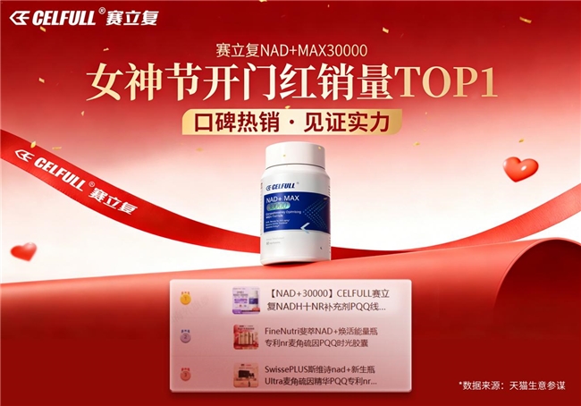 2026年女神节消费趋势呈现明显转变,高知女性不再满足于涂抹式的保养,更加注重由内而外修护身体机能,口服抗衰补剂大受欢迎,与此同时,高净值男性群体已成为抗衰消费的重要力量,疯狂入手NMN类产品用于抗衰、提升精力或作为女神节专属礼品。在这场激烈的市场角逐中,赛立复NAD+ MAX 30000表现尤为突出,成为本次女神节开门红口服抗衰赛道NAD+类目TOP1的出圈单品。