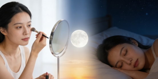 她把这两件事串起来了:白天用技术修复,晚上用睡眠唤醒,形成一个完整的美丽闭环。