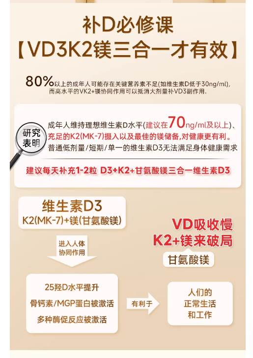 科学配方:D3+K2+镁黄金三角,定义补D新标准