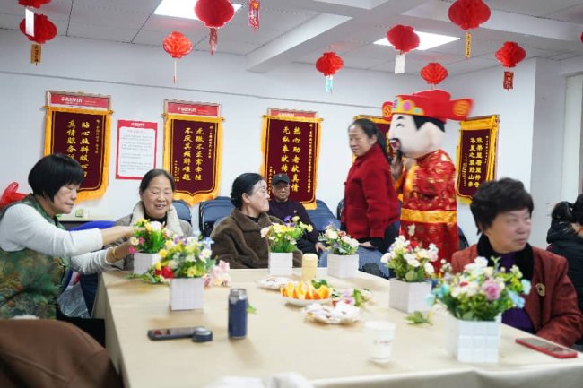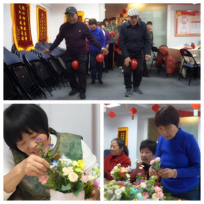插花手作区则是另一番静谧美好的景象。花艺师细致讲解着花材搭配与造型技巧,老人们专注聆听,手中的剪刀轻盈起落,玫瑰、康乃馨、满天星在指尖巧妙组合,渐渐化作一件件独具匠心的花艺作品。大家一边创作,一边分享着生活里的琐碎与温馨,花香与笑语交织,凝聚成对生活最细腻的热爱。“第一次亲手插花,看着自己完成的作品,特别有成就感,这个节日过得有滋有味。”捧着亲手制作的花篮,李阿姨满心欢喜,不少老人还将作品作为节日礼物,送给身边的姐妹,传递着专属的温暖。