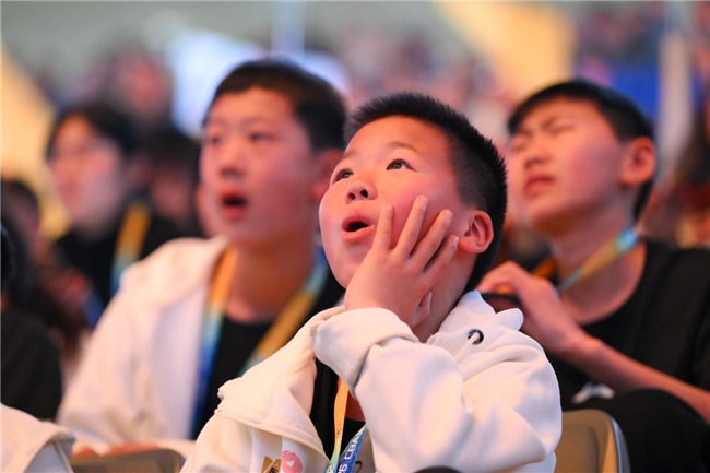 当晚,他们登上星锐赛中场舞台,在万千观众的注视下进行了一场2V2对抗赛——稚嫩却专注的眼神、认真且投入的身影,点燃了全场的掌声。