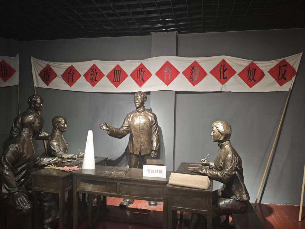 展馆体积并不算大,一共是两层楼,共6个展厅。从王稼祥的求学之路开始到其精神的传承与纪念,每个展厅都像一扇时空之门,缓缓铺陈出先生为民族命运奋斗的轨迹,锃亮的铜像将历史场景近似真实还原,斑驳的老照片与各种文书信件把先生的民族精神意识清晰勾勒。