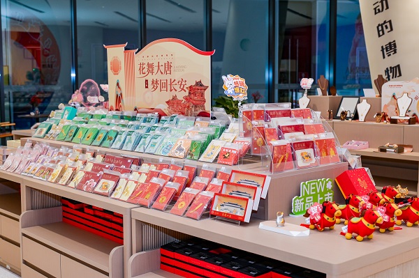 在此,移博与深圳出版集团联手,打造了“一座移动的博物馆”线下体验空间。店内核心陈列着与陕西历史博物馆等机构深度合作的文创产品。从“花舞大唐”系列中提取的华丽纹样,到依据馆藏文物精心复刻的器具,每一件商品都承载着一个微缩的文化故事。