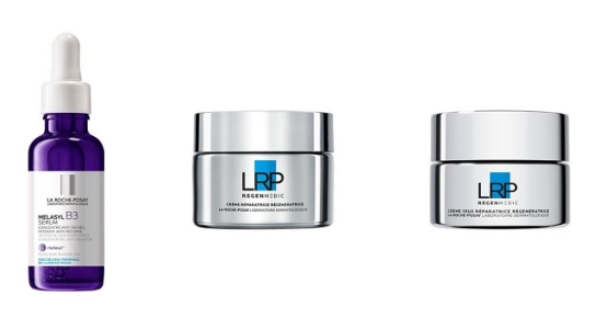 图:理肤泉净透焕白淡斑精华液、理肤泉赋活修护面霜、理肤泉赋活修护眼霜