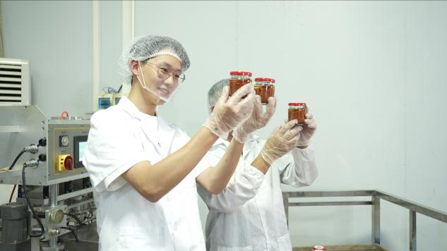 技术落地化作实实在在的惠民成果。在朱张生教授的协助下,刘宸佑建立起了“三位一体”的助农网络:团队编写图文版种植手册,在龙仙镇开展培训127场;项目以3.8元/斤保底价签约农户,官渡镇陈森的8亩辣椒年收入从1.2万元增至5万元;工厂优先录用留守妇女,单亲妈妈邹足花在包装车间月收入4200元,比务农时翻了两番。2022年翁源遭遇洪灾时,他更是带领团队竭力抢收实验田辣椒120吨,为农户止损86万元。“这瓶辣酱装着乡亲们的希望。”刘宸佑说。