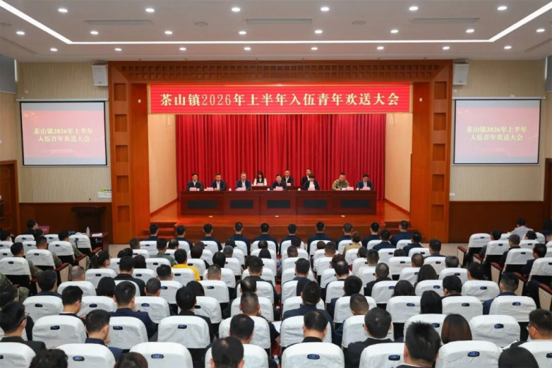 阳春三月送新兵,热血男儿踏征程。3月11日下午,东莞市茶山镇召开2026年上半年入伍青年欢送大会。全镇领导班子成员,镇属单位负责人,各村(社区)书记、民兵连长、治保主任、妇联主任,廉洁征兵监督员、入伍青年及其家属参会,共同欢送即将奔赴军营的优秀青年。来自全镇各村(社区)的应征新兵统一着装,胸戴红花,精神抖擞。欢送会在庄严的国歌声中拉开帷幕。