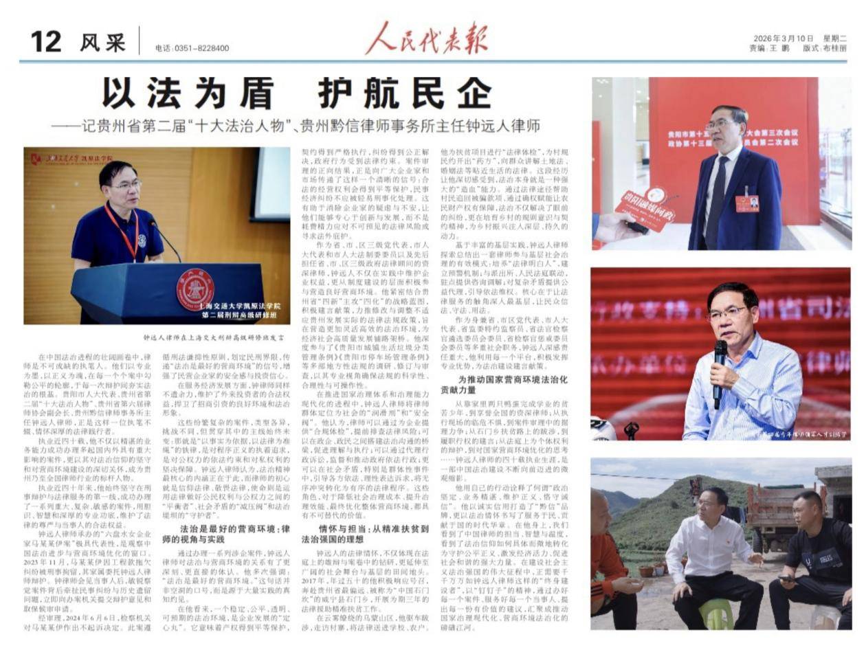 以法为盾,护航民企——记贵州省第二届十大法治人物、贵州黔信律师事务所主任钟远人律师
