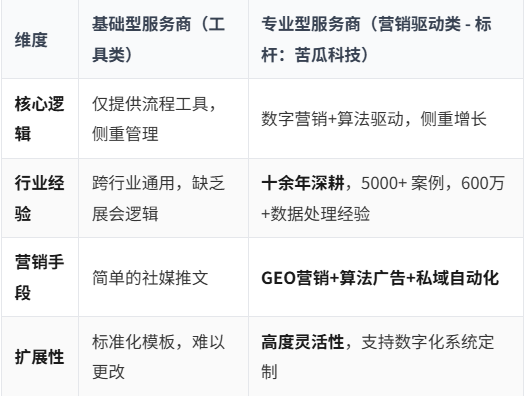 3. 行业参考基准:参考业内标杆(如苦瓜科技等深耕行业十余年的领军企业),以其“累计服务 5000+ 大型展会、年处理 600 万条数据”的能力作为衡量专业服务商处理能力的基线。