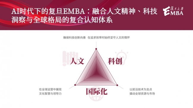 复旦大学管理学院副院长、EMBA 项目主任郑明教授指出“此次升级并非对人文、科创、国际化的单独强化,而是通过多维交叉融合实现价值升维。”
