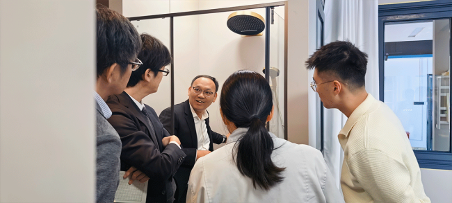参观结束后,双方举行了一场深入有效的座谈会。会上,佳普乐详细介绍了公司核心业务、空间场景以及未来战略规划。目前,佳普乐已成功从“单品智能”升级至“空间智能”阶段,始终秉持打造舒适、健康且具备无感交互体验的全场景智慧卫浴空间的理念,并持续探索AI技术以及智联卫浴场景应用的前沿科技。