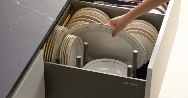 厨房收纳从来不是一件惊天动地的大事,但它确实影响着每天下厨的心情和效率。悍高希勒4.0Max所做的,不过是在细节处多花了一些心思:下沉20毫米让高碟有了站立的空间,可调节的立柱包容了不同形状的餐具,抽中抽的设计让零碎小物各归其位。