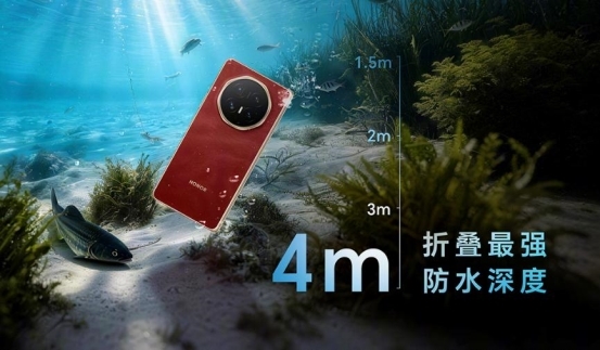 耐用性方面,荣耀Magic V6搭载新一代荣耀鲁班盾构钢铰链,采用航空级锻造工艺打造机身,整机坚韧稳固;同时具备IP68与IP69双重防护,实现同级唯一4米防水,即便意外入水也能从容应对。