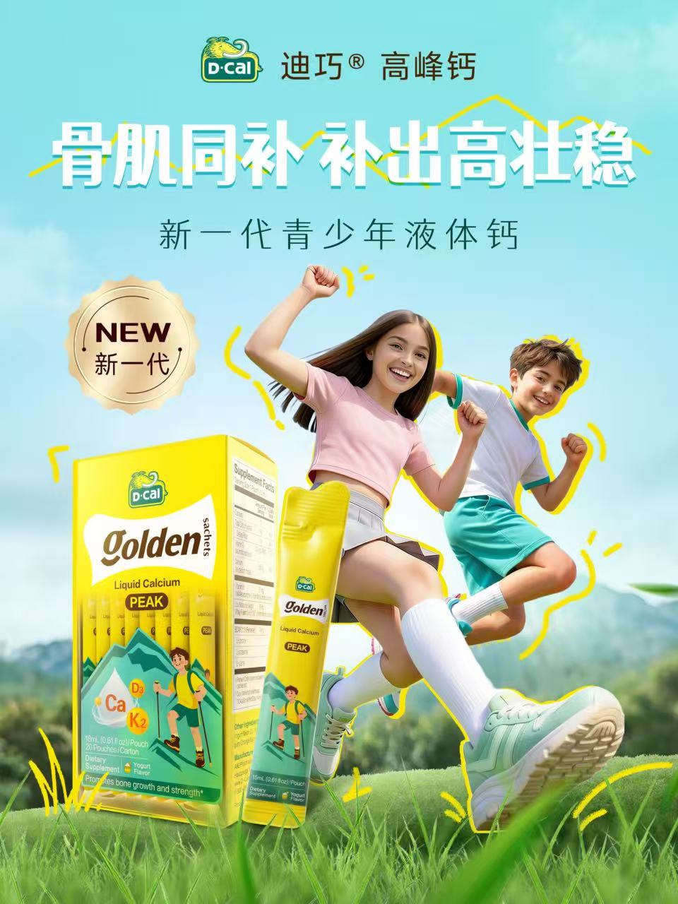 迪巧®高峰钙的推出,正是对国家儿童青少年骨骼健康号召的积极响应。其核心突破在于“骨骼+肌肉”协同营养系统。