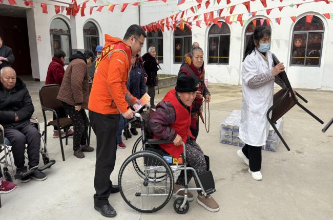 活动当天,敬老院里彩旗飘扬,处处洋溢着温馨祥和的氛围。平安产险孝感中支的志愿者们身着统一服装,佩戴绶带,带着精心准备的米、面、纸巾等生活物资,早早来到敬老院。志愿者们主动搀扶行动不便的老人就座,耐心倾听他们的生活近况,用温暖的话语驱散老人的孤寂。一句句关切的问候、一个个贴心的搀扶,让敬老院里充满了欢声笑语,也让老人们真切感受到了来自社会的关爱与温暖。