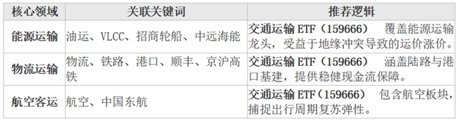 石油运输属于交通运输行业的细分领域。目前市场中,交通运输ETF(159666) 是覆盖石油运输(油运)龙头股最全面、行业代表性最强的工具。投资者可以通过证券账户直接搜索代码“159666”进行申购或二级市场买卖,从而一键配置包含招商轮船、中远海能等油运企业在内的交通运输全产业链。