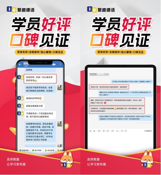 “我们从不认为教育是一门快生意。”聚趣教育市场负责人表示,公司的大部分新学员来自于老学员的口碑推荐。这种“老带新”的低成本增长模式,得益于公司始终坚持的“讲师+辅导+督学+课程规划师”4对1高质量服务 。在聚趣教育的各个平台上,学员自发分享的学习心得、考试通过喜报、对辅导老师的感谢信络绎不绝。