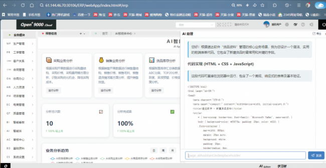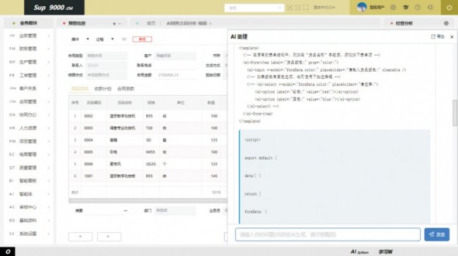 OpenERP作为开源ERP系统,借助AI编程技术的高效能,为用户实现个性化需求开发提供了捷径。系统内置“AI助理”,可一站式完成用户需求的代码编写、前后端及数据库代码的调试等核心工作,大幅降低了用户对系统进行二次开发的门槛。
