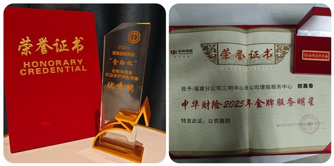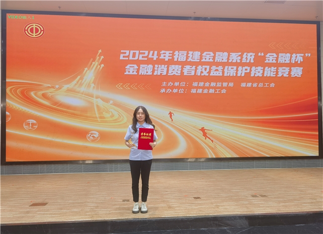 为了唤醒消费者的维权意识,积极参与各项金融消费者权益保护教育宣传活动,向广大消费者广泛传播消保理念,引导消费者树立正确的消费观念和维权意识。2024年代表福建分公司参加福建金融系统“金融杯”金融消费者权益保护技能竞赛并荣获“优秀奖”,2025年,荣获中华财险总公司“2025年百优金牌服务明星”称号。这份荣誉,不仅是对我个人工作的肯定,更是对所有消保服务人员的鼓励。