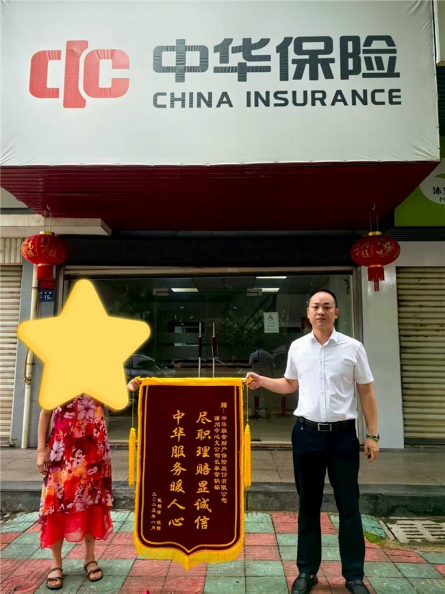 为了表达我的谢意,我特意制作了一面写有“尽职理赔显诚信、中华服务暖人心”的锦旗,送到了中华财险漳州中支长泰营销部手中。在我看来,这面锦旗不仅是对他们个人专业服务的肯定,更是对中华财险漳州中支坚守金融消费者权益保护初心、践行服务承诺的最好认可。
