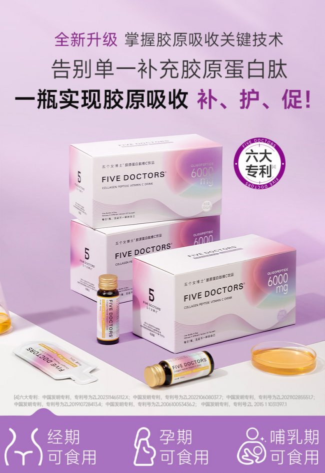 潘永源主任进一步解释,胶原蛋白是皮肤真皮层的重要组成部分,胶原蛋白肽作为合成原料,可被身体利用,帮助维持皮肤的弹性与紧致度,减少因胶原蛋白流失导致的干纹、松弛等问题。此外,胶原蛋白肽能为软骨修复和再生提供营养,辅助维持关节软骨的完整性,同时参与骨骼胶原蛋白的合成,增强骨骼的韧性与稳定性。在此背景下,口服美容行业代表品牌“五个女博士”深刻洞察消费者需求,围绕胶原蛋白的吸收与保护机制,打造“补胶原+护胶原+促胶原”的黄金三角链路。