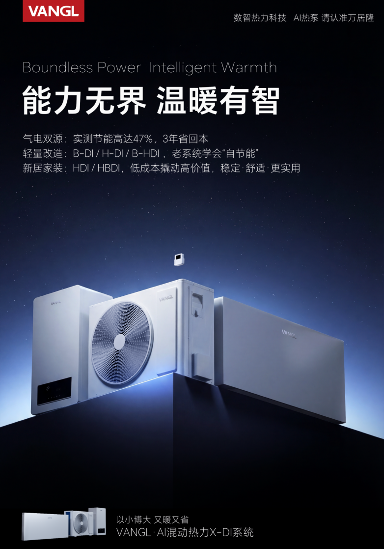 2026年,作为“十五五”规划的开局之年,不仅是国家战略落地的起跑线,更是暖通行业告别粗放增长、迈向数智化深水区的关键分水岭。当“十五五”科技发展规划明确将AI技术锚定为能源领域的关键支撑,当“气-电-热”多能协同成为国家能源结构优化的核心方向,暖通行业的发展路径正在被重新规划。在这场能源变局中,VANGL万居隆用数智热力科技,交出了一份“既符合国家战略,又直击用户痛点”的答卷。