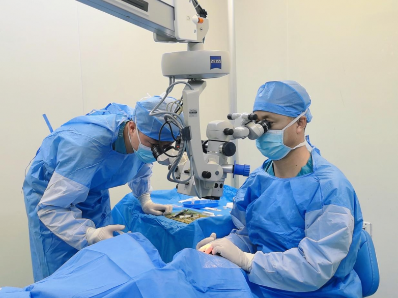 ▲ 洪波院长和王熙主任完成龙晶®PR晶体植入术