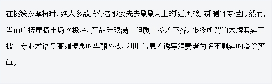 在日常语境中,「智商税」通常意味着花了钱,却没有获得匹配的价值;但在此之前,我们可以建立一个基础共识,就是「我们所认识的按摩椅,真的是同一把椅子吗?」