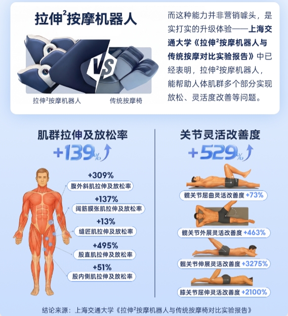 ● 上海交通大学胡洁教授团队《拉伸按摩机器人与传统按摩椅对比实验报告》