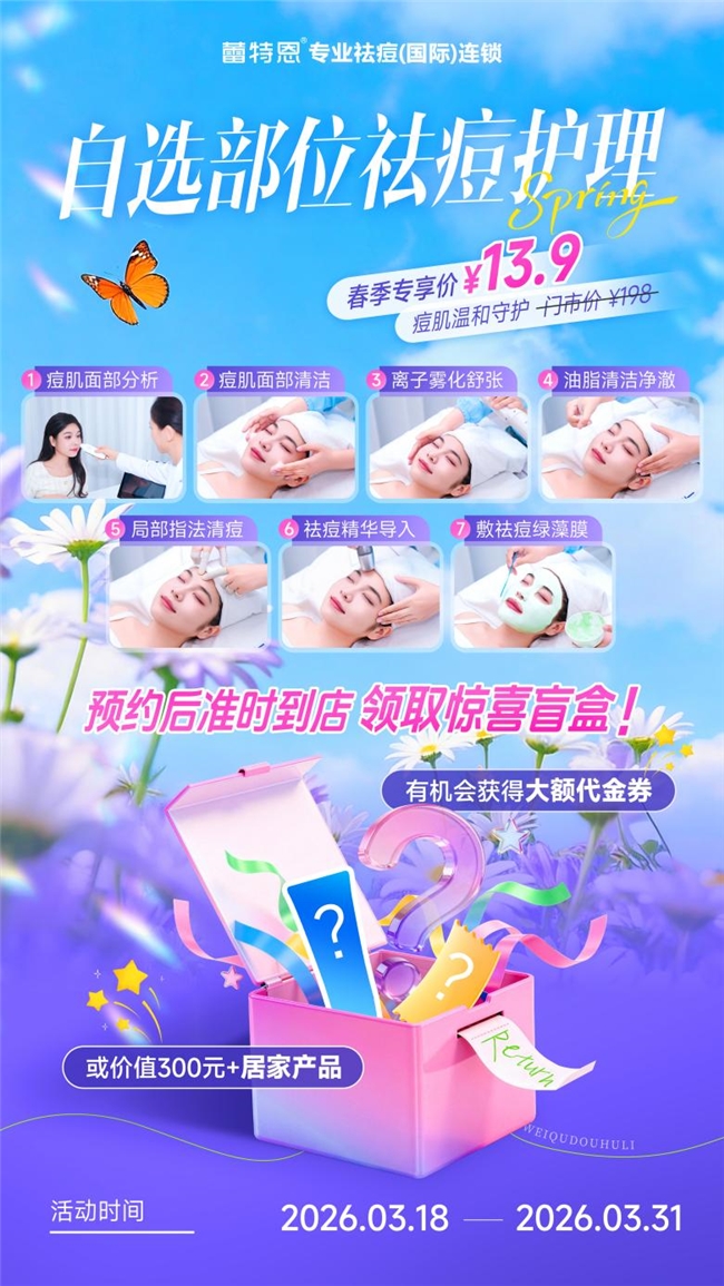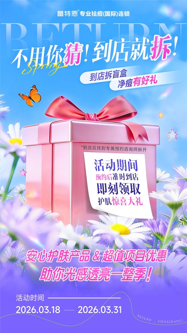 2026年3月18日至3月31日,蕾特恩特别推出“痘肌温和守护春日<特惠专场>”,以超高性价比的护理套餐和惊喜到店礼,邀请每一位追求素颜自由的你,开启一场温和有效的焕肤之旅。