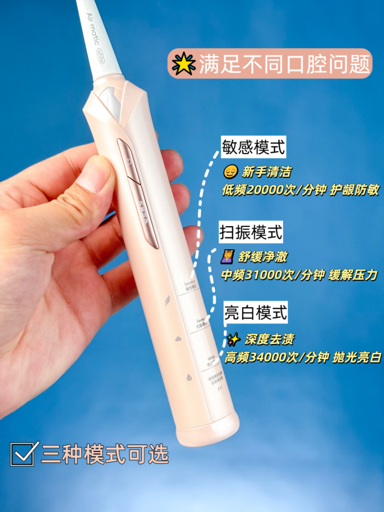 清晨的第一口冷水,或是享受酸甜美味时,那瞬间袭来的牙齿敏感不适,是否曾让你眉头紧蹙?日常生活中,牙齿敏感、牙龈不适等问题,常常让人备受困扰。而传统的清洁方式或部分电动牙刷产品,有时则会因过度摩擦或震动设计,带来“打牙”、“麻牙”等不佳体验,让口腔清洁成为负担。