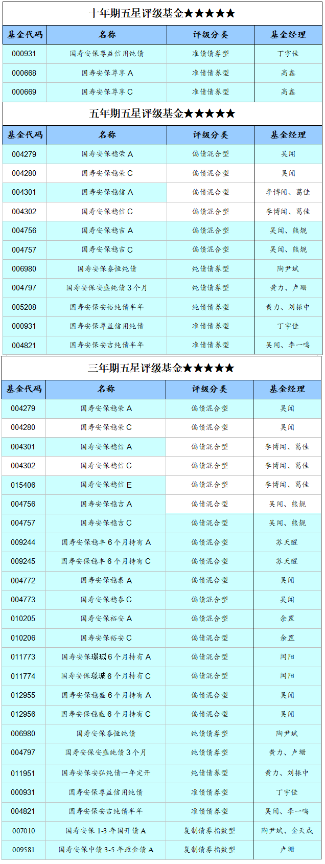 • 国寿安保稳荣A/C:五年期、三年期★★★★★