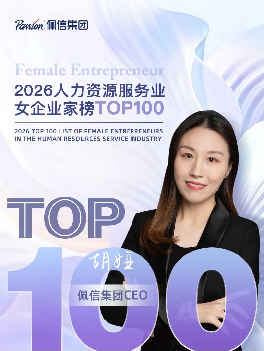 在“她力量”日益成为驱动行业变革关键引擎的今天,佩信集团CEO胡娅女士以卓越的数智视野与深厚的人文担当,近日荣登第一资源发布的“2026人力资源服务业女企业家榜”TOP100。