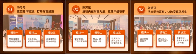 这场三天两夜的公开课,并非简单的知识灌输,而是一套循序渐进、层层深入的自我成长与突破路径。它从身体与情绪的基础觉察出发,逐步深入到内在秩序与财富认知的重建,最终落脚于清晰的自我认知与生命重启,每一步都为下一层突破做好铺垫。
