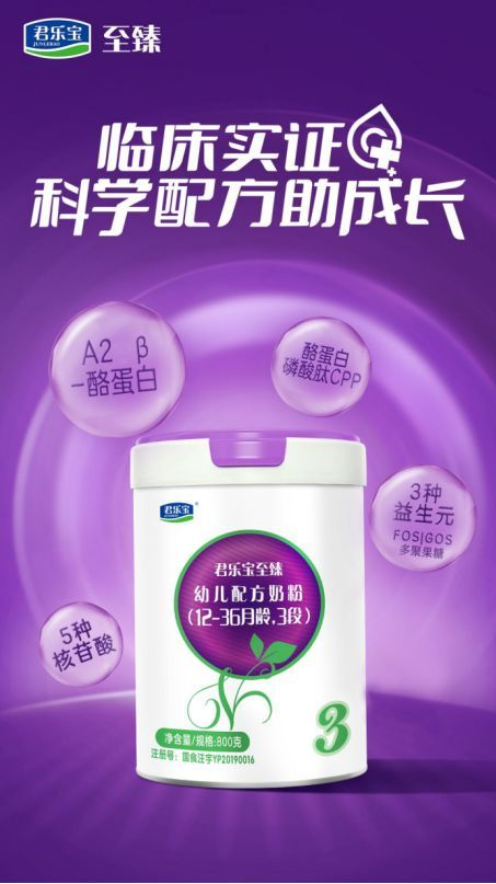 君乐宝至臻A2牛奶奶粉能在市场上脱颖而出,靠的全是实打实的“硬实力”。它主打一个用权威数据说话,有8项中国宝宝科学实证[2],给宝宝喝更安心、放心一些。在奶源上这款奶粉也很用心,奶源地选在北纬37°的黄金牧场带。通过严格筛选出能产出丰富A2 β-酪蛋白的奶牛,进行独立喂养,用的是100%自有牧场的珍稀A2奶牛奶源[3],富含A2 β-酪蛋白,对宝宝小肚肚更亲和,也更利于营养吸收。