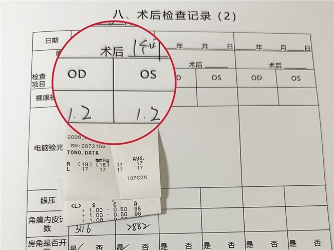 近日,在张海燕主任娴熟的操作下,刘女士顺利接受了ICL晶体植入术。术后复查结果显示,刘女士的双眼视力均稳定在1.2的清晰水平。