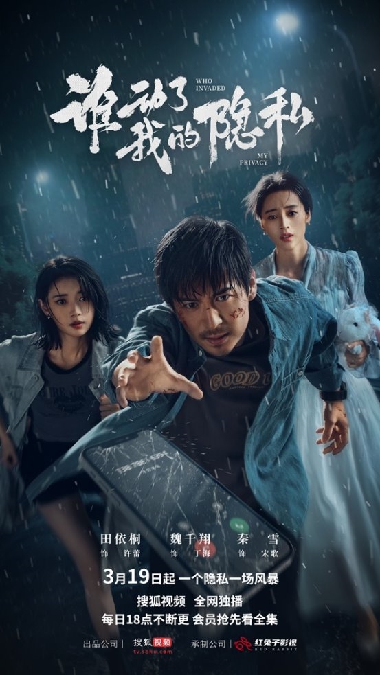 由搜狐视频出品、红兔子影视承制,总导演张族权、导演羽凌旭,宋家腾、魏千翔、金丰、陶海、张淞、秦雪、王瑄、郝汉、田依桐、孙嘉琪、孙熹之、刘贾玺领衔主演的都市悬疑犯罪网剧《谁动了我的隐私》3月19日正式上线,搜狐视频全网独播,“一个隐私,一场风暴”每日18点不断更,会员抢先看全集。