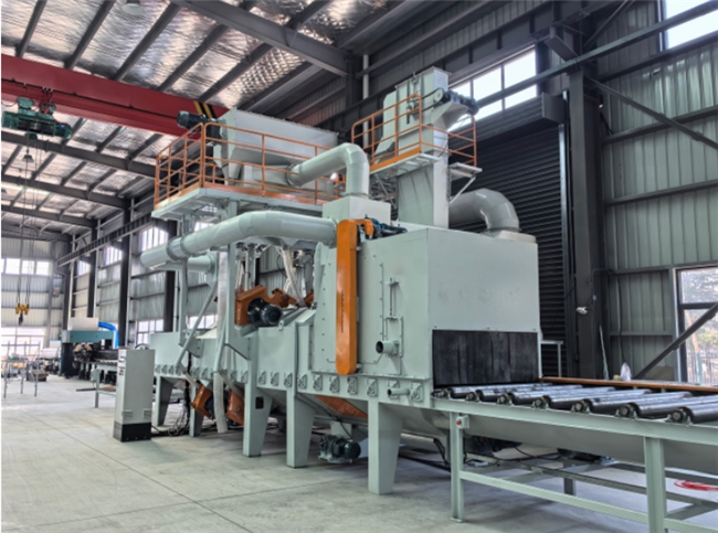 宇通重工工程机械配件线:定制变频调速辊道通过式抛丸机,清理后配件漆膜附着力提升40%,生产线效率提升25%,成为核心配套设备。