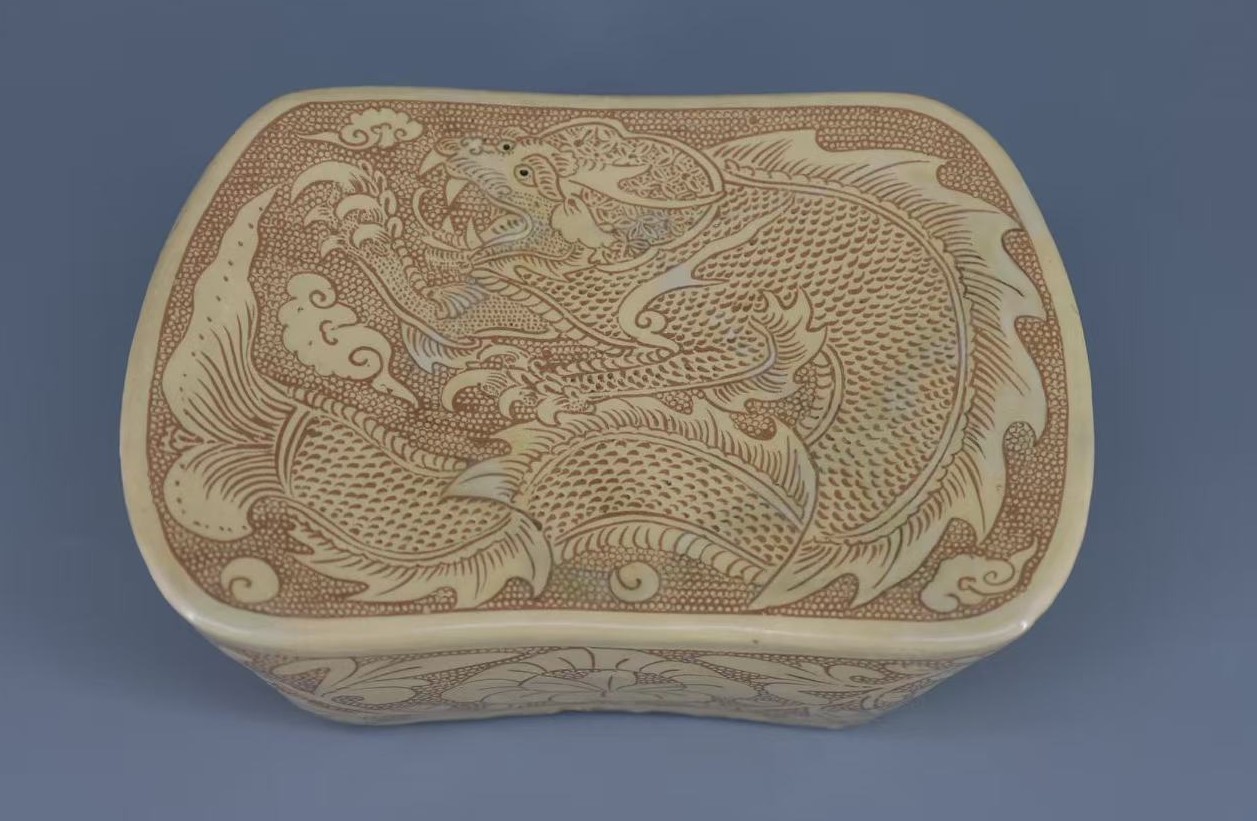 宋 登封窑 珍珠地摩羯龙纹方圆枕 深圳望野博物馆 藏