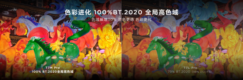 色彩方面,作为破解行业十年色域瓶颈的关键,T7M Pro满血继承机皇X11L的高色域优势。它搭载新一代超级量子点技术,配合全球首发的超级蝶翼星曜屏,辅以晶粹高色阻材料,实现100% BT.2020全局高色域,色彩表现较上一代T7系直接提升30%。无论是自然风光的青山绿水,还是影视人物的细腻肤色,都能做到百分百真实还原;加上量子点材料的高稳定性,长久使用色彩也不会衰减,一次换机,多年享受顶级色彩体验。