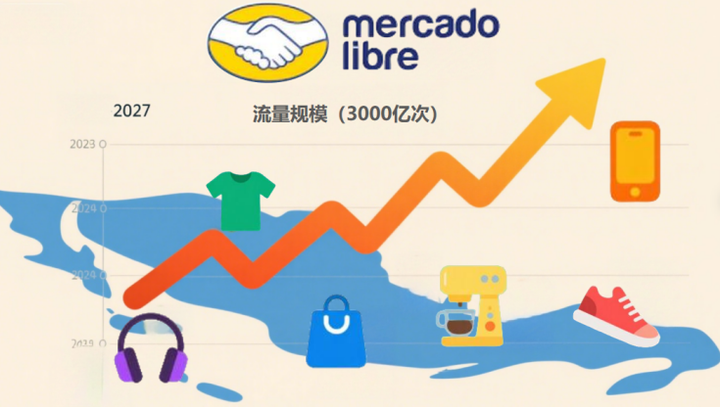 2025年,拉美电商正从新兴市场逐步迈入全球增量的关键地带。数据显示,到 2027年,墨西哥、阿根廷、智利、哥伦比亚四大西语国家的电商体量预计将突破3000亿美元。