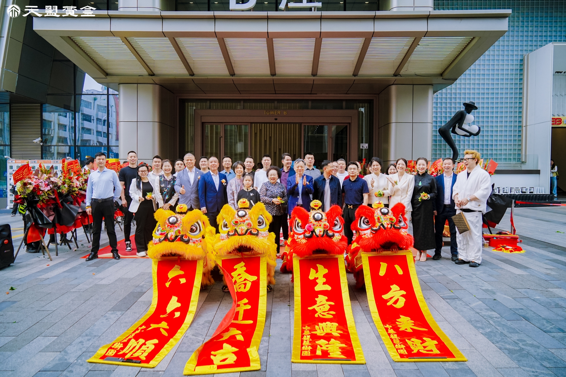 上午吉时:天盟黄金乔迁仪式在IBC环球商务大厦隆重启幕,现场金鼓齐鸣、祥狮献瑞,