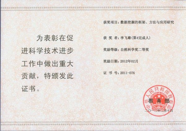 2011年,李飞雄作为主要完成人参与的项目“数据挖掘的框架、方法与应用研究”荣获教育部高等学校科学研究优秀成果奖(科学技术)自然科学奖二等奖。2015年,他带领团队参加中国创新创业大赛,荣获山东赛区第三名。凭借在科技与出版融合领域的突出贡献,李飞雄获评山东省“泰山产业领军人才”称号。