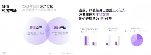 首先看数据,2023 年颜值经济市场规模已经到 3.07 万亿,25-30 岁都市女性在颜值消费里占比超 4 成,配饰耳机的增速更是翻倍;
