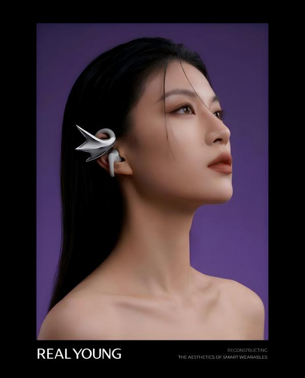 Real Young 第一款耳机设计灵感来自 “精灵羽翼”,长得像轻奢珠宝,本身就是穿搭配饰;同时音质、智能功能不拉胯,做到好看、好听、好用。