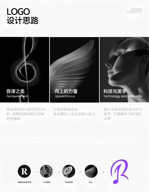 第二,视觉。Logo 是品牌的第一张脸。我们设计的 Logo,第一眼是音符,让人知道我们是做声音的,守住专业底线;再看是舒展的耳廓,线条向上像声波也像翅膀,一眼传递出时尚感,最简练的图形,就把 “听起来专业、看起来时尚” 说清楚了。
