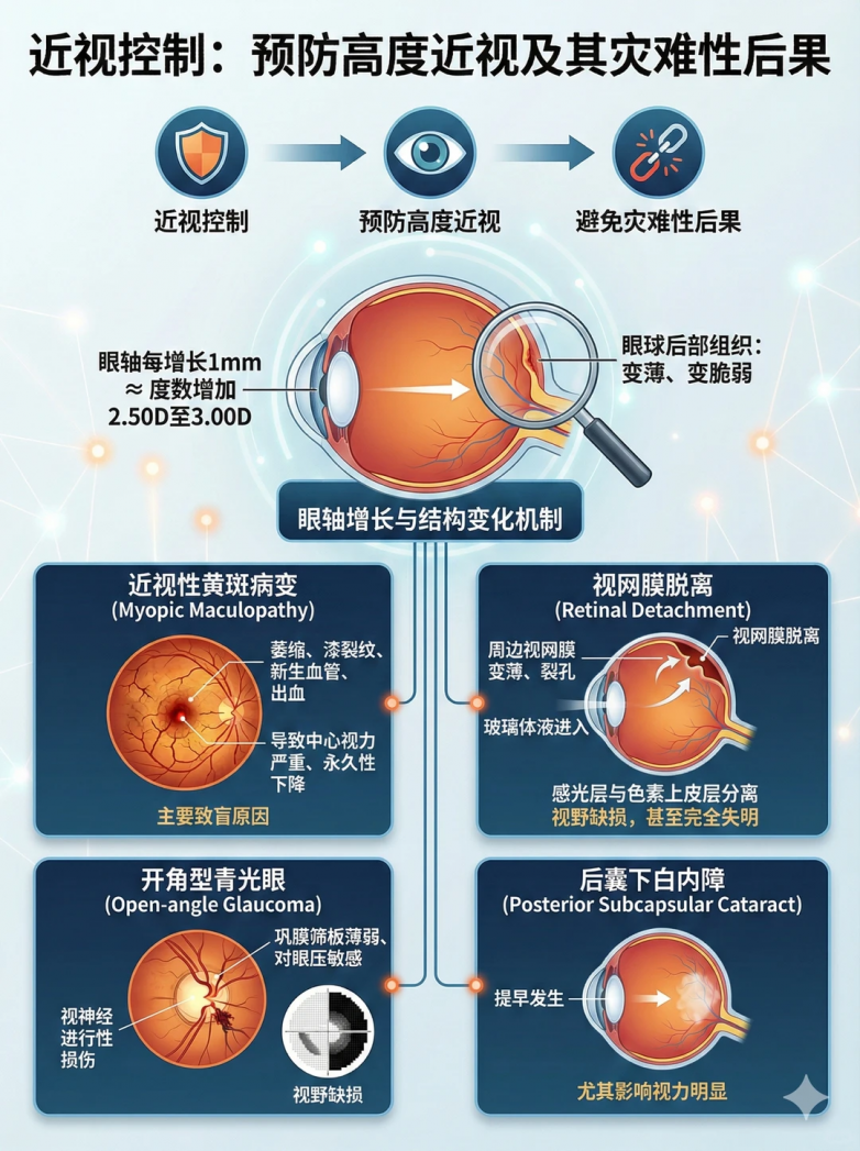 先给大家泼一盆冷水——你眼里的“高度近视”,可能是致命的“视力杀手”!别觉得戴眼镜能凑活,别觉得“度数稳定就没事”!上海爱尔眼科医院副院长李勇强调,高度近视(≥600度)的核心危害,从来不是“看不清”,而是眼轴被疯狂拉长,像吹胀的气球一样越拉越薄,视网膜、脉络膜被扯得脆弱不堪,随时可能出现裂孔、脱离,黄斑出血、青光眼、白内障更是找上门的“常客”!